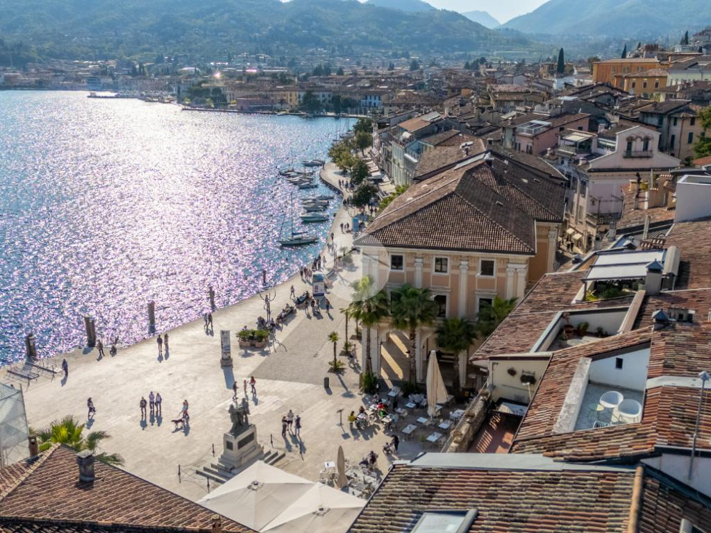 Nel cuore più autentico ed elegante di Salò, affacciato direttamente su Piazza Vittoria, dove il lago incontra la vita della città e dove attraccano i battelli, proponiamo in locazione transitoria un attico di assoluto prestigio all’interno del rinomato Condominio Vittoria. Una soluzione abitativa che rappresenta una vera e propria cartolina sul Lago di Garda, grazie alla splendida terrazza fronte lago di circa 30 mq: uno spazio esclusivo, raro e scenografico, dove ogni momento della giornata si trasforma in un’esperienza unica, tra luce, silenzio e panorami senza tempo. L’appartamento, di circa 90 mq, si trova al terzo ed ultimo piano senza ascensore e si sviluppa con grande armonia degli spazi: la zona giorno, elegante e luminosa, accoglie un soggiorno con cucina open che si apre completamente verso l’esterno, creando una continuità perfetta tra interno ed esterno. La zona notte è composta da due camere matrimoniali raffinate e da un bagno curato nei dettagli, in linea con lo stile signorile dell’intera proprietà. Completamente arredato, l’immobile è pronto per essere vissuto fin da subito, con ambienti pensati per garantire comfort, funzionalità ed eleganza. A rendere questa proposta ancora più esclusiva, la presenza di un box auto di generose dimensioni, elemento estremamente raro in una posizione così centrale e prestigiosa. Una proprietà unica, destinata a una clientela selezionata che desidera vivere il lago da una prospettiva privilegiata, immersa nella bellezza e nella comodità del centro.