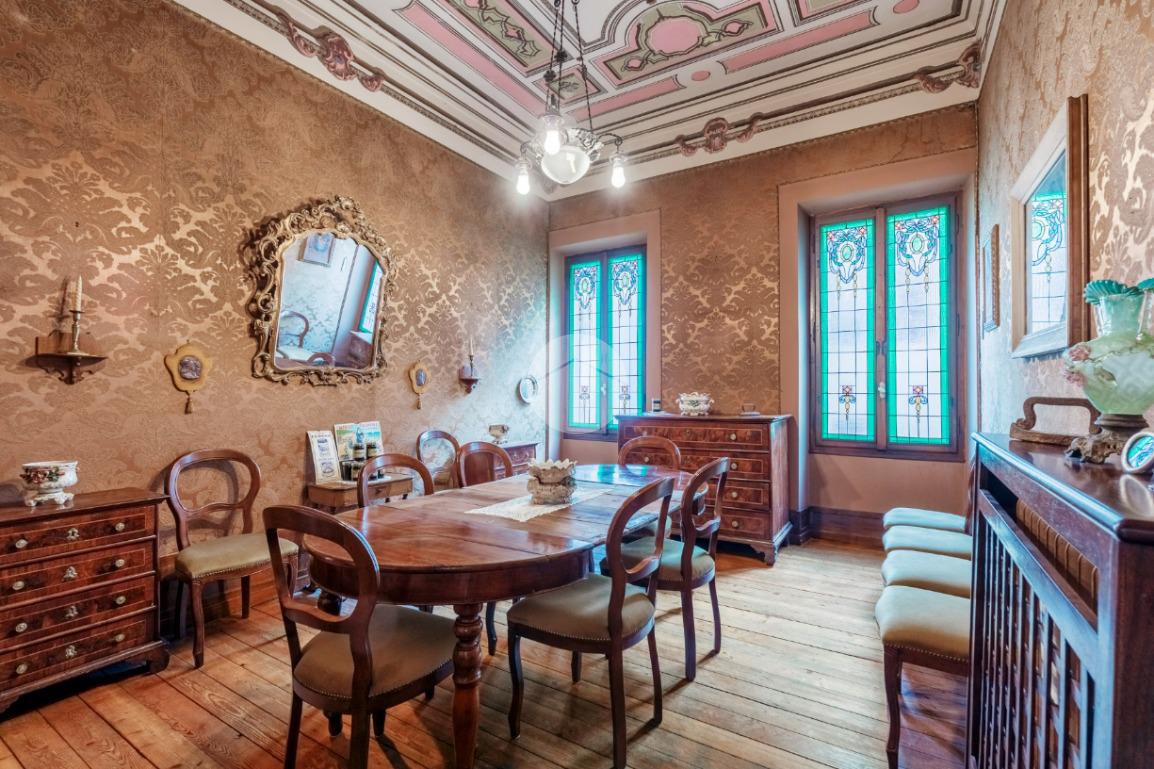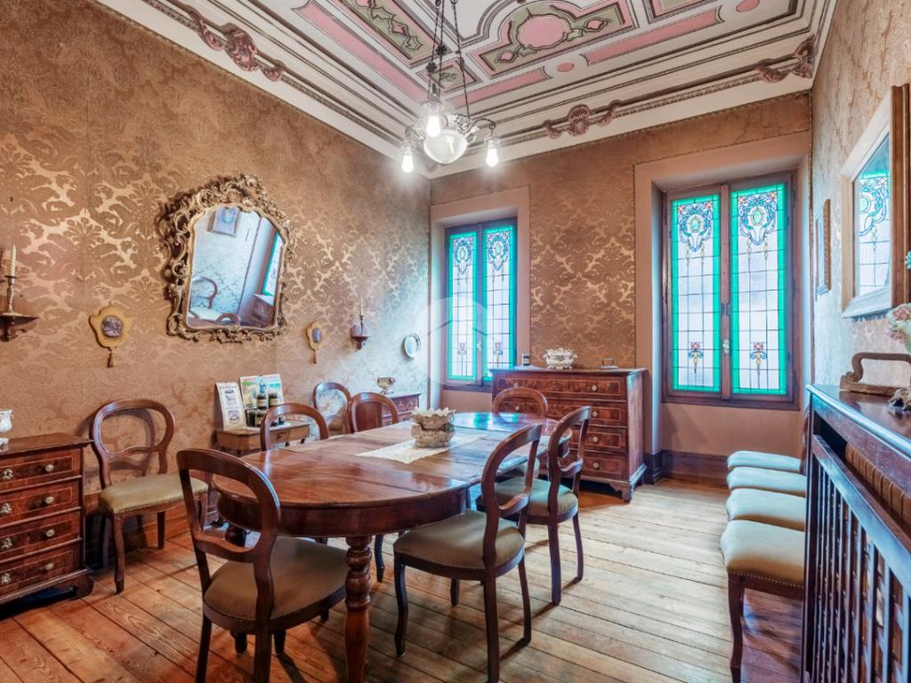 Nel pieno centro storico di Salò, a pochi passi dal lago, proponiamo un palazzo storico del 1800 di straordinaria rarità, giunto fino a oggi completamente intatto in ogni sua parte. Un’autentica dimora d’epoca che conserva arredi originali, accessori, lampadari, finiture e materiali di assoluto pregio, testimoni di un passato illustre e perfettamente leggibile. L’edificio si sviluppa su una superficie interna complessiva di circa 879 mq, articolata su piano terra, primo piano, secondo piano e sottotetto, tutti collegati da una scenografica scala interna di grande impatto architettonico. Gli interni sono impreziositi da affreschi originali, soffitti cassettonati, parquet pregiati, pavimenti in marmo e dettagli decorativi di altissimo livello, che restituiscono il fascino autentico delle grandi residenze nobiliari ottocentesche. Elemento di unicità assoluta, difficilmente riscontrabile tra i palazzi storici del centro: un giardino privato di circa 874 mq, elegante e riservato, vero polmone verde nel cuore urbano. All’interno del giardino si trovano una suggestiva limonaia con struttura vetrata e un magazzino con portico, perfettamente integrati nel contesto storico.